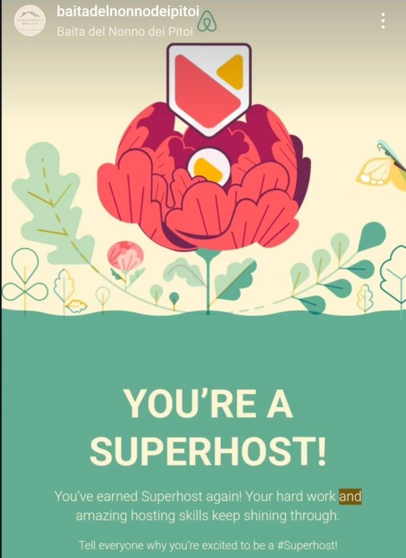 "Splendida baita! Posto suggestivo, privacy e tutte le comodità. Un panorama fantastico, quiete e relax per una settimana davvero rigenerante. La proprietaria è molto disponibile. Consigliata a coppie o famiglie in cerca di un'esperienza unica a contatto con la natura e che vuole immergersi nella vita montana. Nelle vicinanze malghe e aziende che producono prodotti locali di ottima qualità: formaggi, miele, vino e frutti di bosco. Gli unici rumori che si sentono sono i cinguettii degli uccelli e il belare delle pecore. Il mio compagno ed io abbiamo visto dei tramonti bellissimi e la sera tutto intorno alla baita scendono le lucciole. Grazie per questa fantastica esperienza."